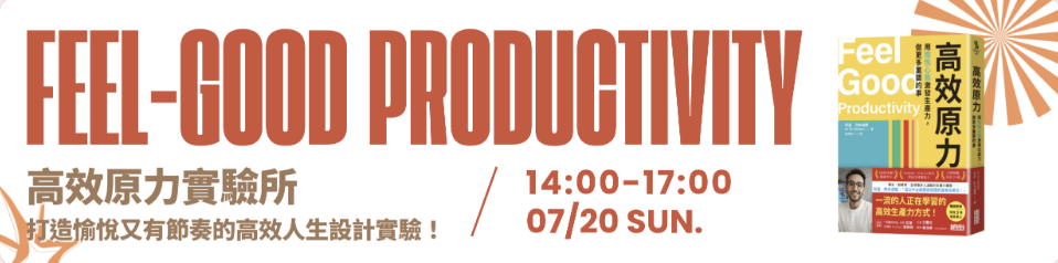如果你對自律、自由、或生產力有其他見解,想和我一起討論,也歡迎參加看看我即將於 7/20(日) 14:00-17:00 即將舉辦的高效原力工作坊。